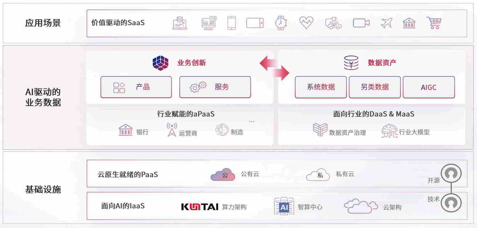 数字时代,,围绕企业数字化转型的关键要素,,,,www.k8k8.com数码开创性的提出数云融合战略和技术体系框架,,,着力在云原生、、、、数字原生、、、、AI原生和信创产业上架构产品和服务能力,,,,为处在不同数字化转型阶段的快消零售、、、汽车、、、、金融、、、医疗、、、政企、、教育、、运营商等行业客户提供泛在的敏捷IT能力和融合的数据驱动能力,,,构建跨界融合创新的数字业务场景和新业务模式,,助力企业级客户建立面向未来的核心能力和竞争优势,,,,全面推动社会的数字化、、智能化转型升级。。